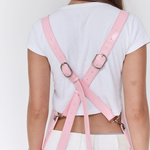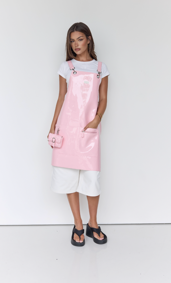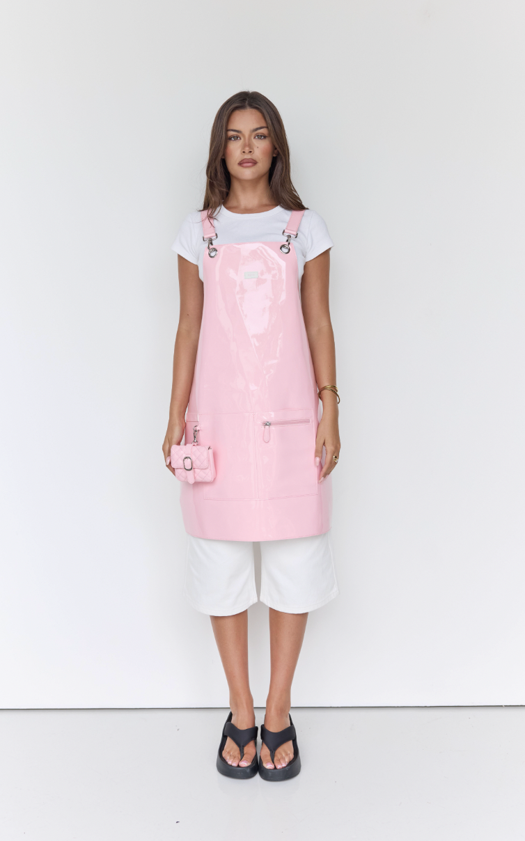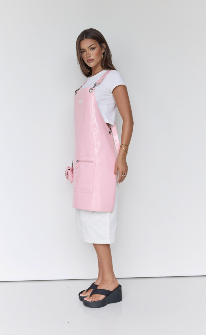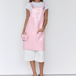 The Iconic Comfort Apron in Candy Pink Gloss - Thoughtfully designed and made to last, whilst breathable, bleach proof and will keep you comfy while you create, it's a dream to wear from the start of work to the finish.