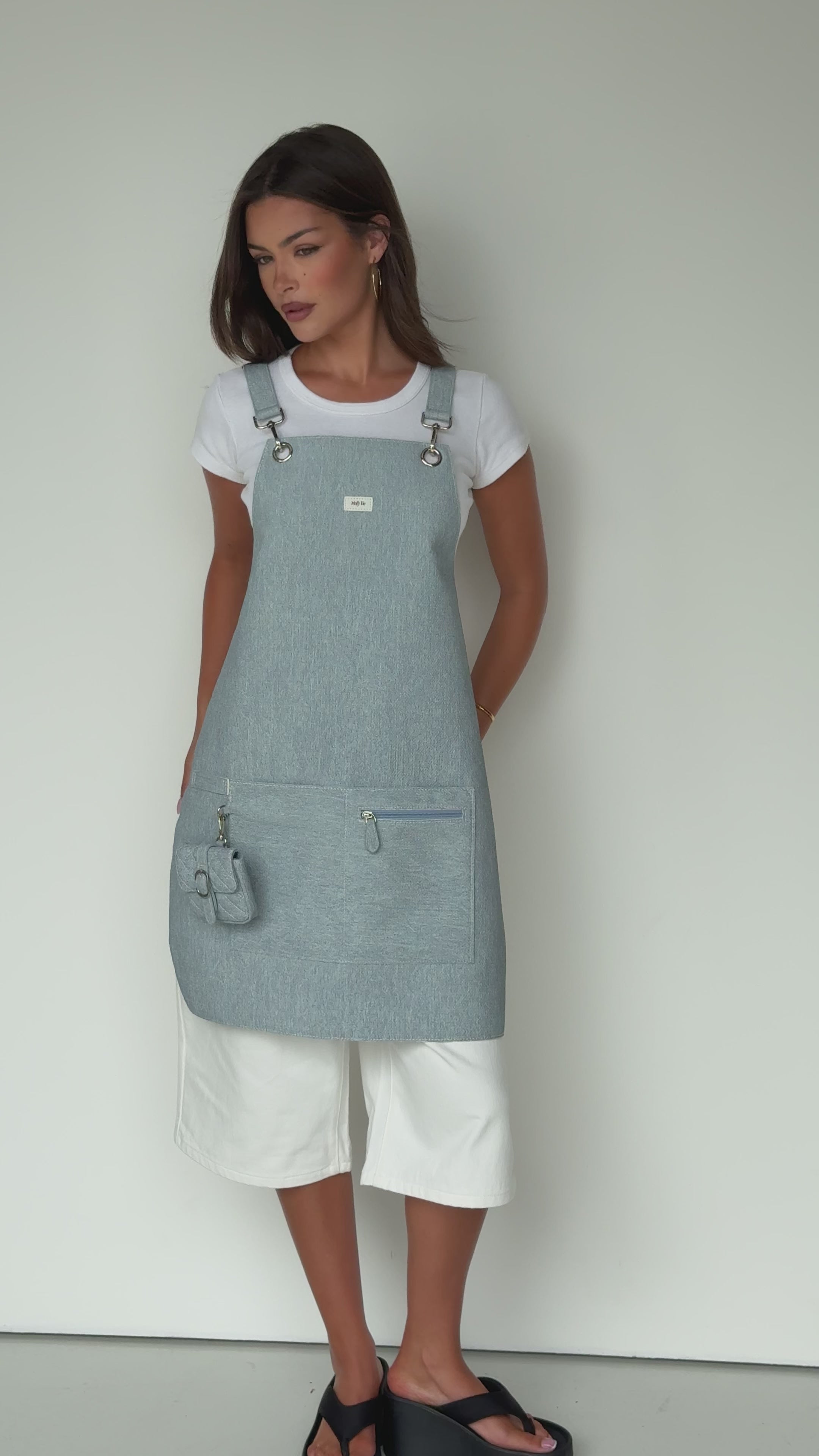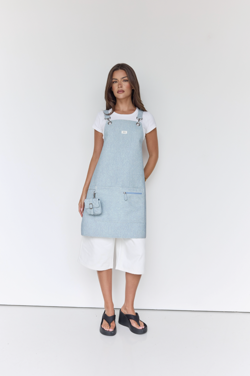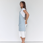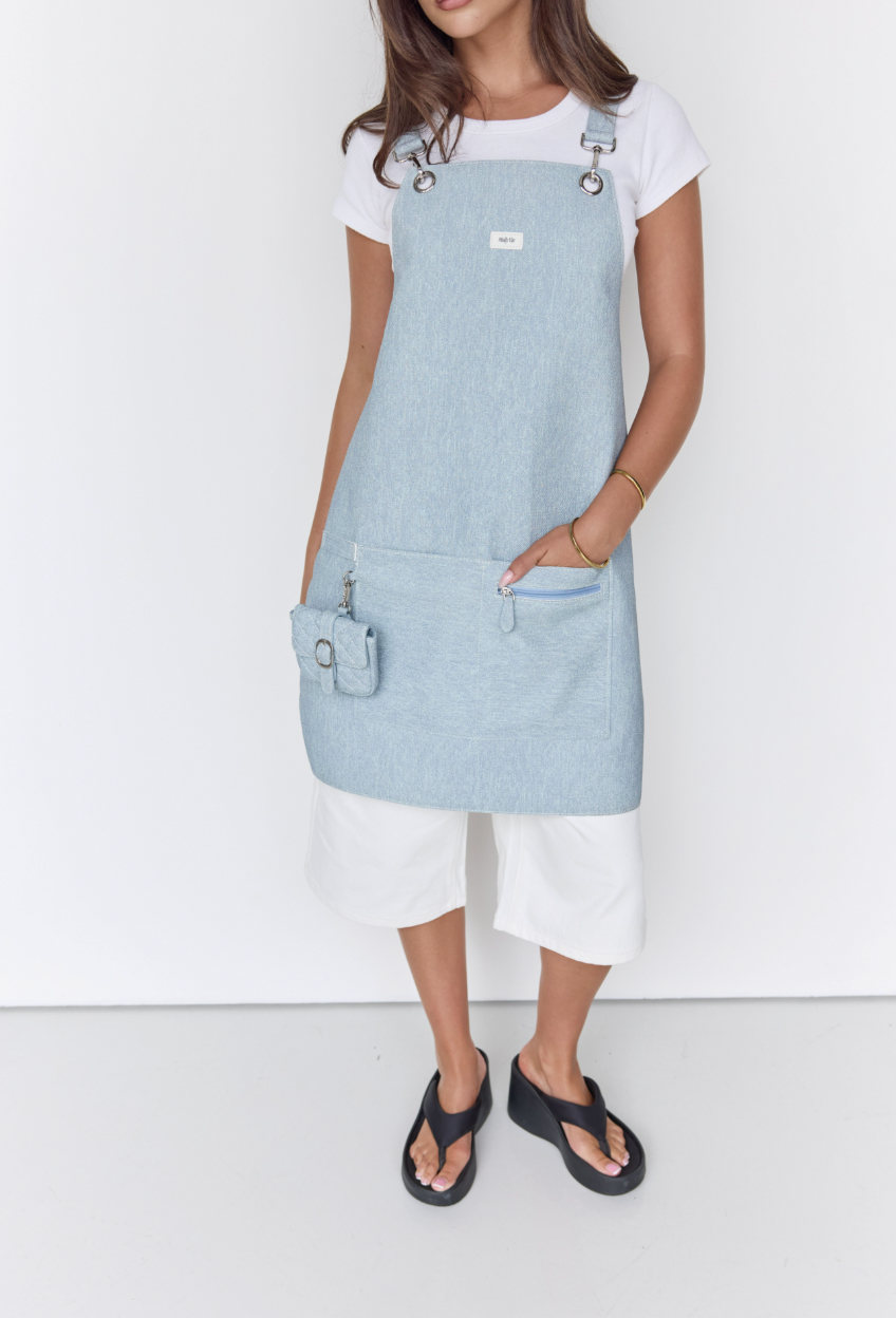 The Iconic Comfort Apron in Denim - Thoughtfully designed and made to last, whilst breathable, bleach proof and will keep you comfy while you create, it's a dream to wear from the start of work to the finish.