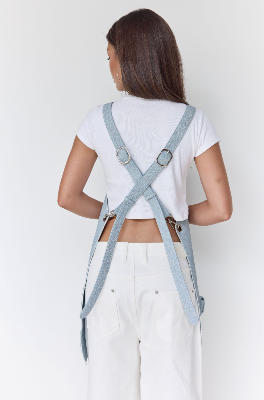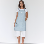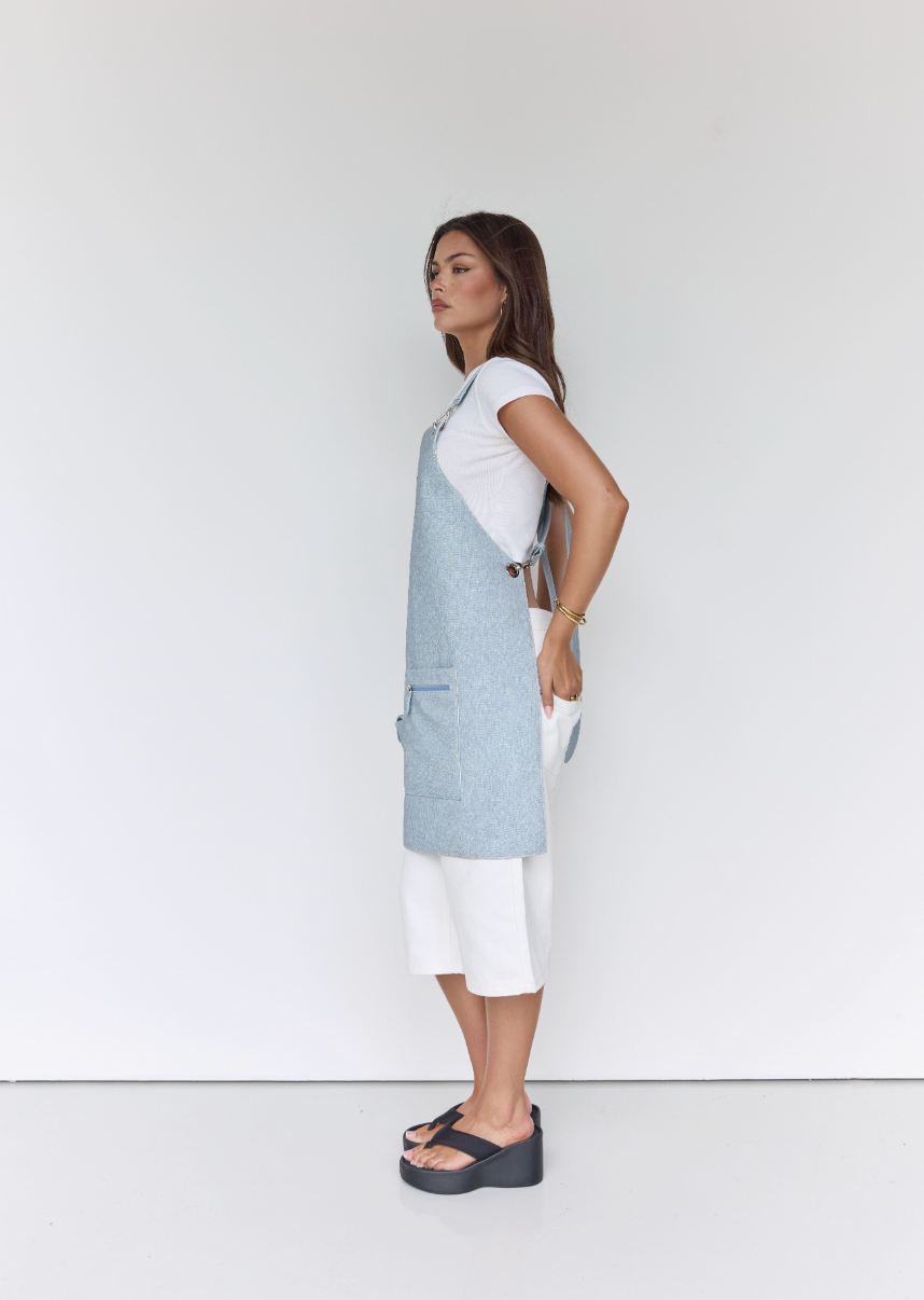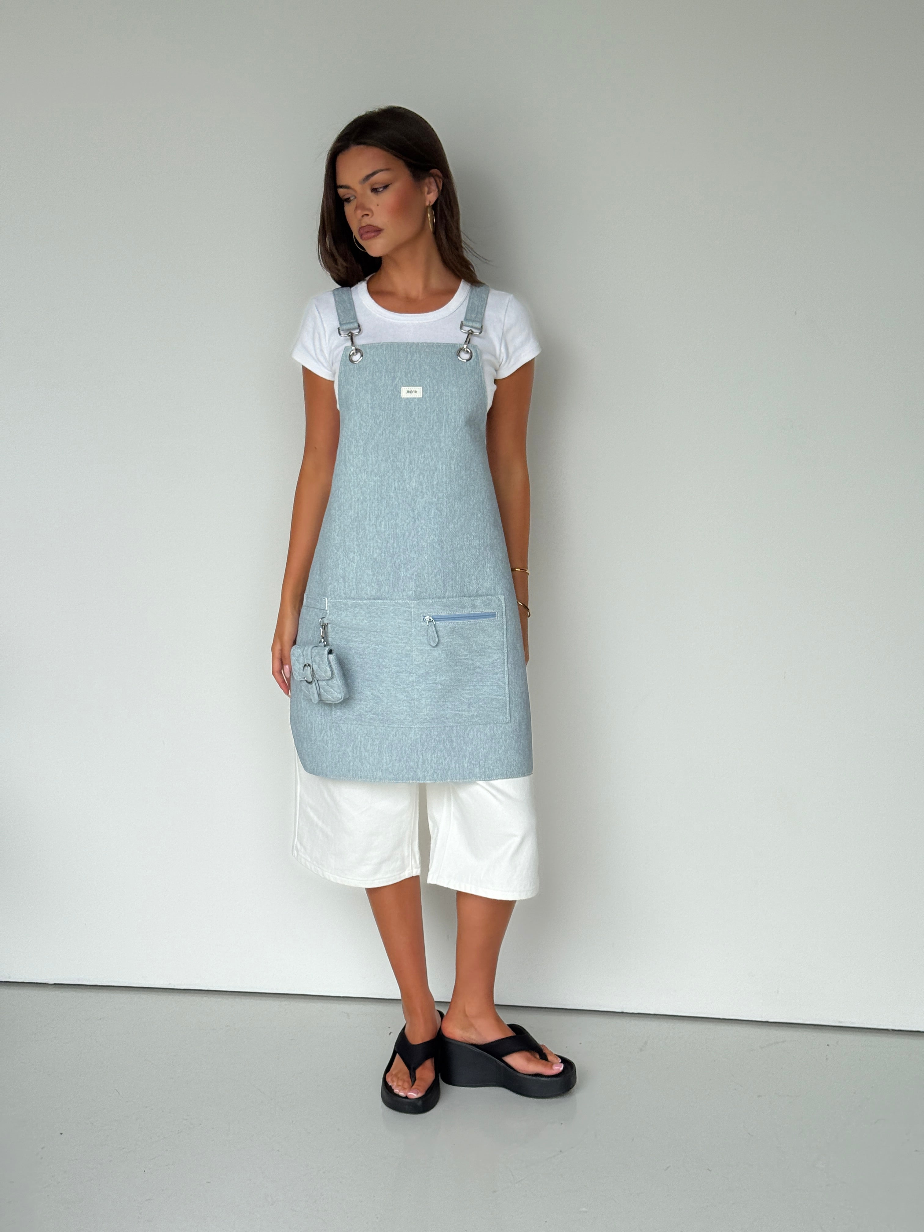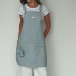 The Iconic Comfort Apron in Denim - Thoughtfully designed and made to last, whilst breathable, bleach proof and will keep you comfy while you create, it's a dream to wear from the start of work to the finish.