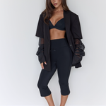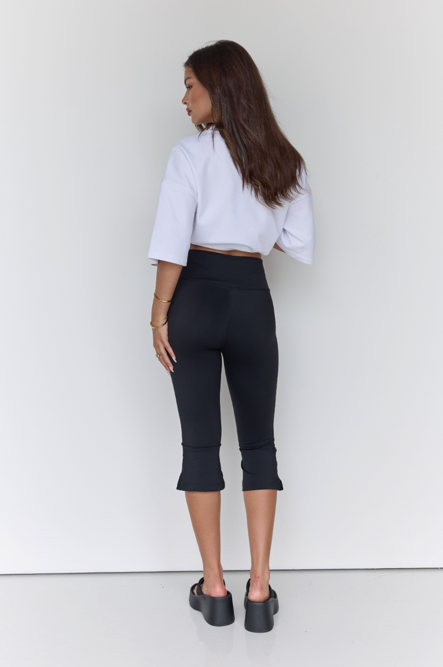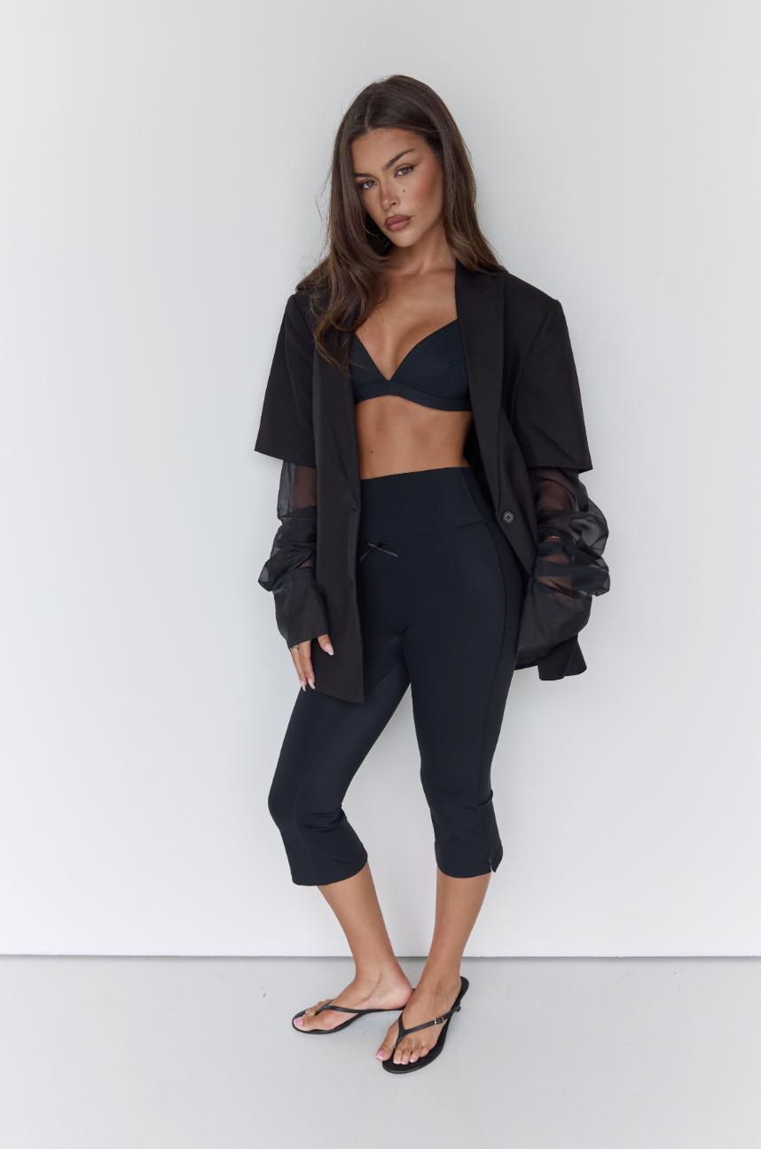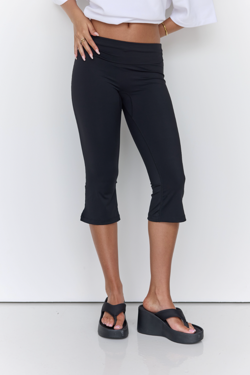 Sleek, black, and made to move with you — these capris are all about effortless energy X A flattering, streamlined fit hits right at the calf for that perfect balance of comfort and edge. Pair them with a halter top, tank, or blazer for day-to-night vibes!