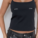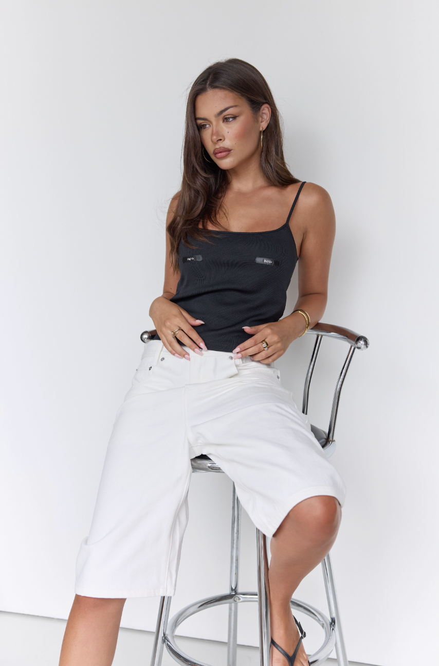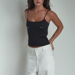 Meet the tank that does all the talking. Sleek, black, and effortlessly cool, the logo detailing at the front adds a subtle, statement-making edge to your everyday top X Layer it, style it, or wear it solo — she’s made to go everywhere with you.