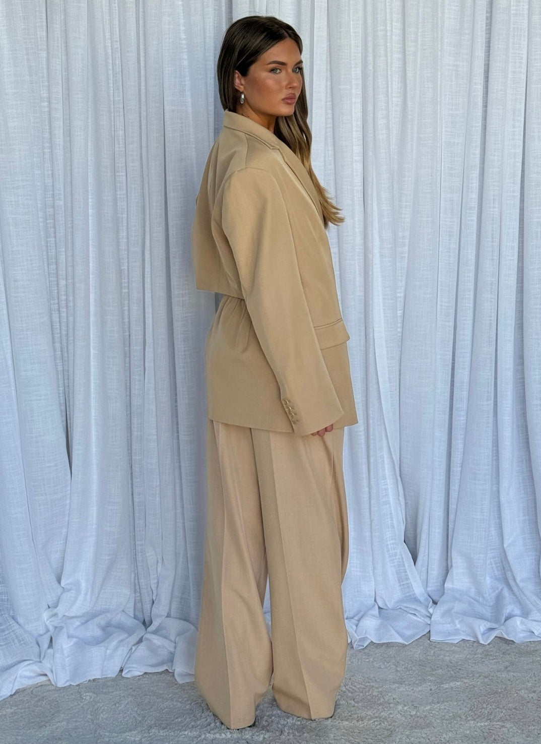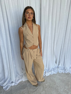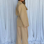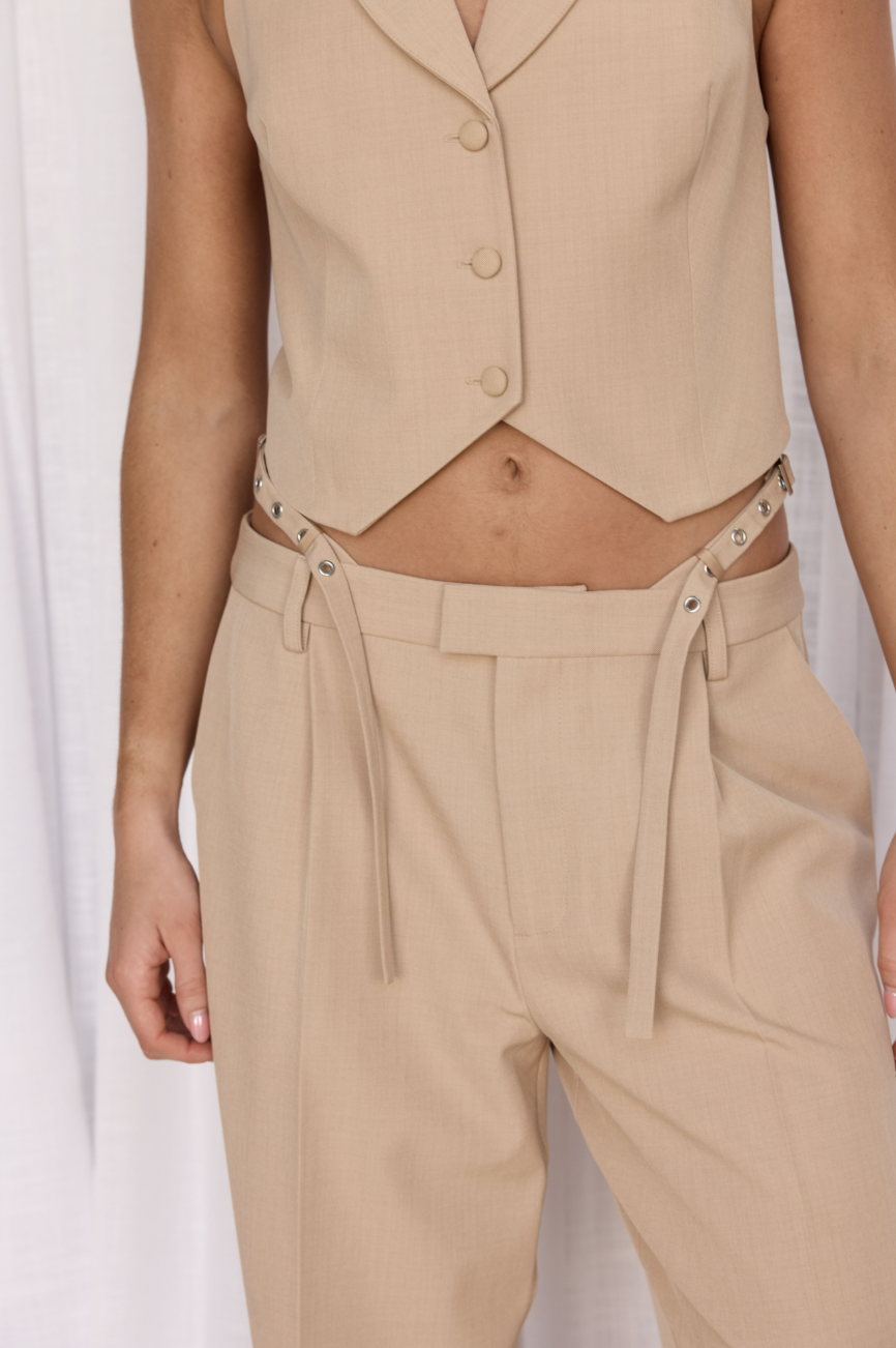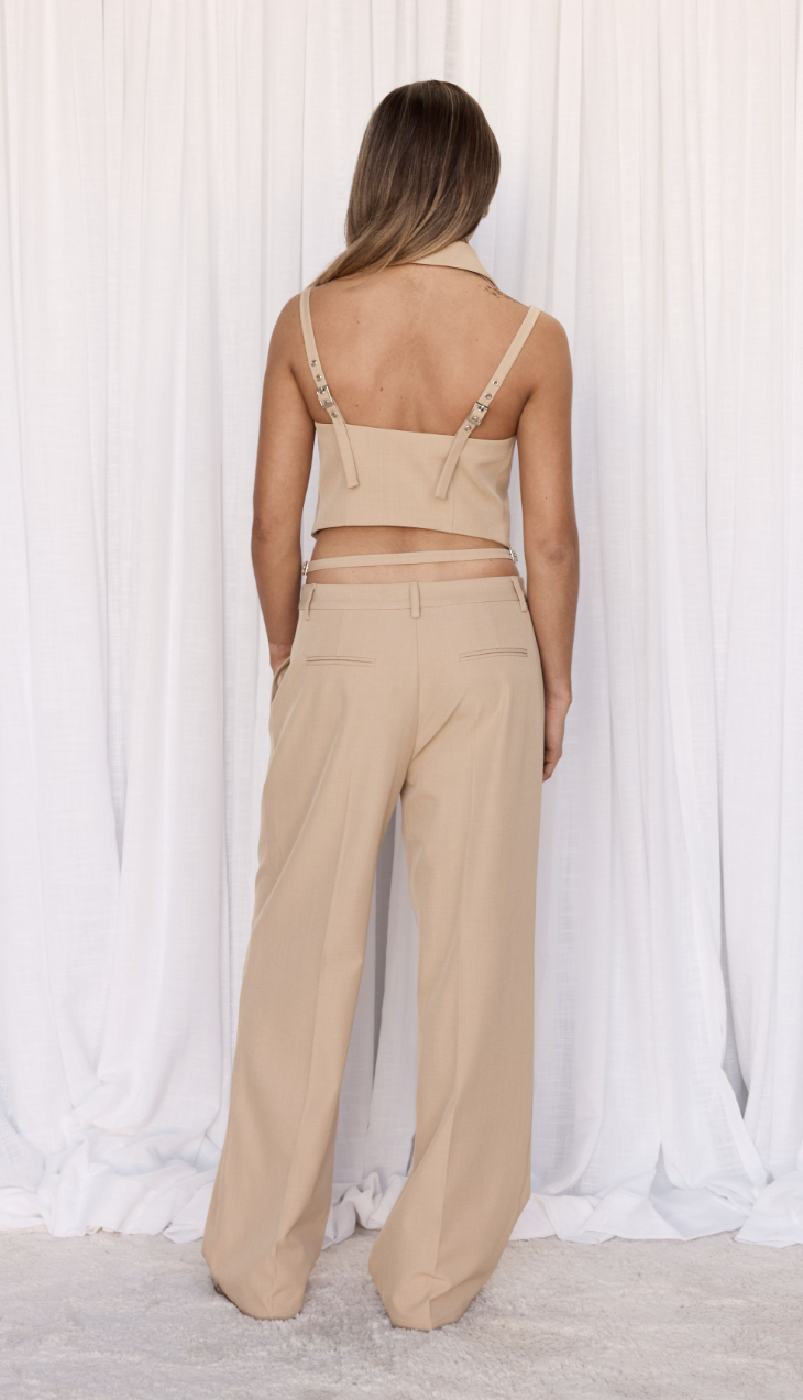 Your new go-to power pants have arrived! The Molly Vie Pants – Latte are tailored to perfection with a high waist and flowy wide leg that moves with you. The soft neutral tone keeps things minimal, while the studded belt detail adds just the right edge.