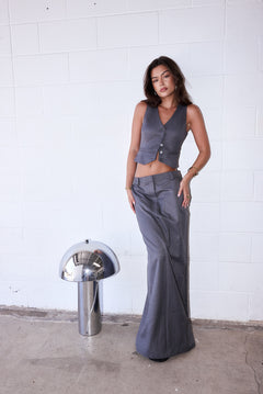 Sophistication meets modern flair with this Cropped Grey Pinstripe Waistcoat. With its tailored cut and classic pinstripe design, it’s great for dressing up a simple outfit at the salon! Pair it with the Grey Pinstripe Low Rise Shorts or the Grey Pinstripe Maxi Skirt for an effortlessly cool outfit.