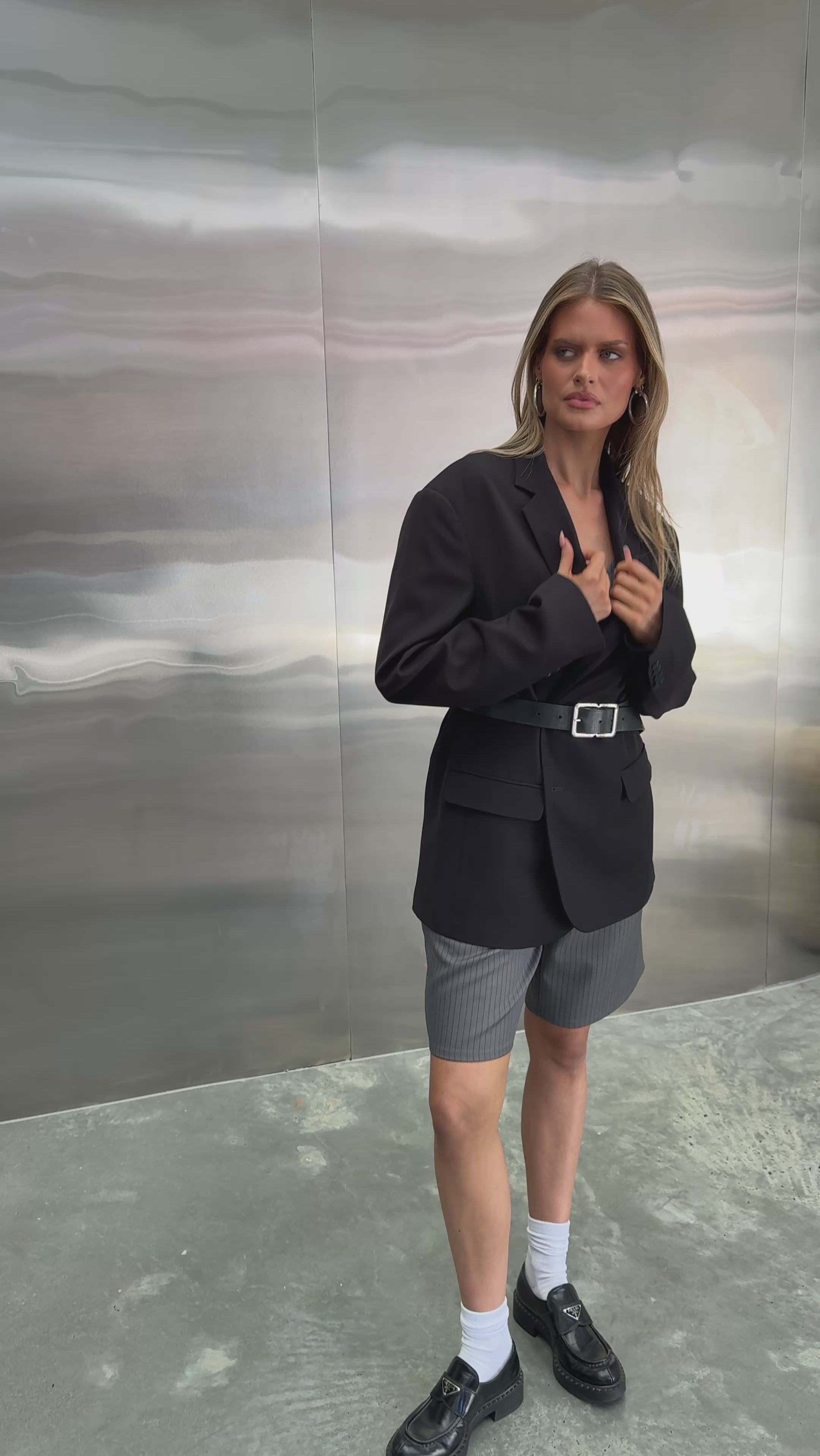 A fresh twist on a classic Black Low Rise Shorts look, these low-rise Grey Pinstripe Shorts are designed for those who want to keep things stylish yet effortless. Perfect for pairing with a Blazer for a polished vibe or a simple Ribbed Tank for an easygoing work OOTD. Designed for the busy hairdresser on the go, these low-rise grey pinstripe shorts are just what you need to take your style from the salon floor to happy hour.