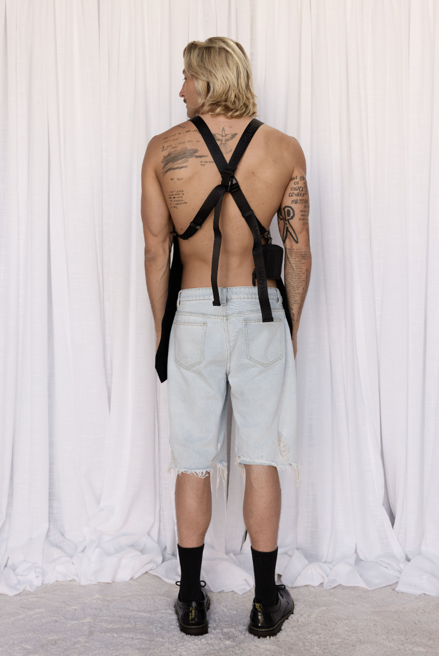 Adjustable straps, and a mini attachable purse/Case, two pockets and a zip embossed logo detailing- fits most sizes XS- XXL